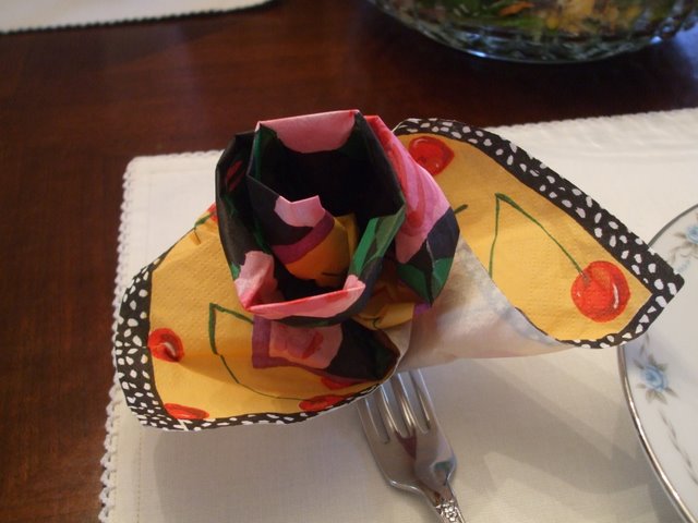 A nice addition to any table is a fancily folded napkin. Professor Julie taught me two different ways to turn an ordinary napkin into a piece of art.