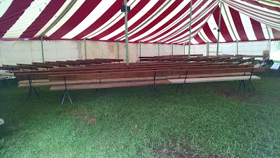 ◦ My plan was to go straight to the cemetery when we got back and stay there for a while to try and think about tomorrow's meeting. I took a leisurely walk up that way, taking pictures as I went, enjoying the sunshine. When I got to the cemetery, I discovered that there was a man there and decided to not stick around, just because. I backtracked and found a cluster of rocks next to the path that I could sit on and enjoy the view. In this short span of time, it began to sprinkle. I stayed there for a while, hoping it would pass, but finally I had to head back to the grounds. I didn't want to get my bible out and get it wet; plus, I didn't want to be out if it started to rain hard as it sometimes does with little or no warning. Unfortunately for me, the sun didn't come back out the rest of the day. Maybe I can at least make a short trek up there tomorrow after the meetings.